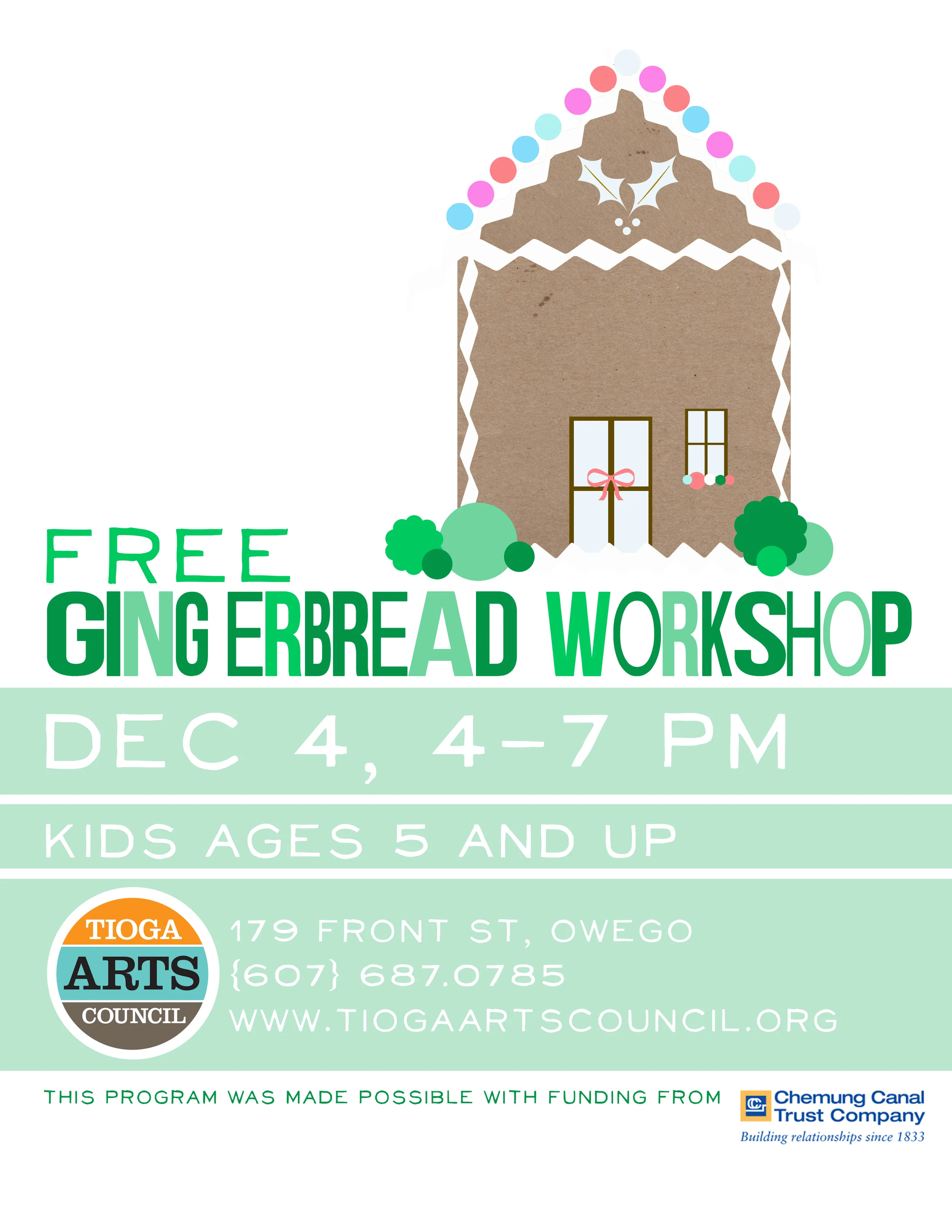 Our youngest artists are invited to decorate hand-crafted gingerbread houses on the first Friday in December as part of the Lights on the River Festival in downtown Owego. Due to limited space, this free workshop is available on a first-come, first-served basis.
